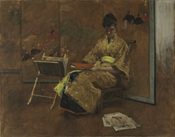 Versión de Joven con vestido japonés. El quimono (1887), de William Merritt Chase / @conchagonzalov