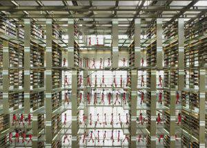 The glass floor in the bathroom of this penthouse has an illuminated view of an unused 15-story elevator shaft. Guadalajara, Mexico.