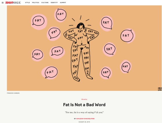 - La serie de artículos The F* word (en referencia a la palabra “fat”, gorda) de Teen Vogue.