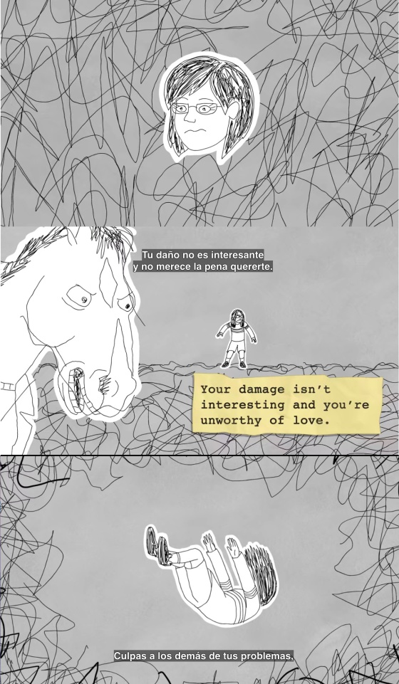 Diane es otro pilar en la vida de Bojack. Tiene que lidiar con muchísimas frustraciones y traumas y también ha tenido una mala relación con su padre. Quiere ser escritora, una escritora de éxito, aunque la vida no siempre la lleva por dónde a ella le gustaría. Por el camino, un matrimonio fallido con Mr. Peanutbutter, un actor al que la expresión "bonico pero tontico" se le ajusta bastante bien. En esta última tanda de episodios (para aquí si no has visto la segunda mitad de la última temporada), Diane trata de escribir su novela. Quiere hacer autoficción, sus memorias, sobre sus traumas infantiles. La realidad es que en el momento de ponerse a escribir podemos ver que ya no se la come la depresión gracias a la medicación, pero en cuanto la deja, la ansiedad la tiene paralizada y es incapaz de redactar el libro que tanto desea.
