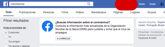 Además de eso, cuando alguien busca “coronavirus” en Facebook, el primer mensaje de los resultados avisa de que podemos consultar “la información más actualizada de la Organización Mundial de la Salud” (OMS), añadiendo un enlace a esta entidad. Un mensaje similar aparece en Instagram cuando buscamos publicaciones con la etiqueta #coronavirus.