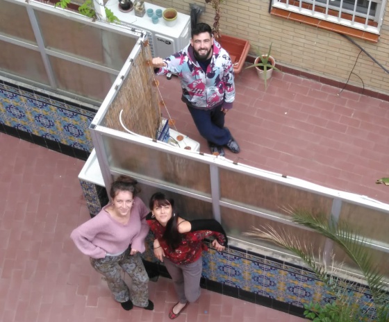 “Hablar con los vecinos me cambia totalmente la perspectiva del día. Intentamos aliviarnos recíprocamente. En esta situación de confinamiento todos estamos jodidos y tenemos problemas, nos hace sentir un poco menos solos. Llevo aquí casi tres años y los había visto, pero nunca me había parado a hablar con ellos apenas dos minutos. Ahora, a mi vecino Sergio muchas veces incluso no lo veo cuando hablamos porque tiene una pared… Si lo piensas es un poco ridículo, parece una peli, pero está guay y te anima”.