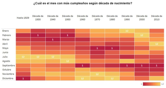 ¿o cuál es el mes con más cumpleaños según la década de nacimiento?