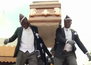 El tuit se ha compartido más de 15.000 veces en un día, con el texto: “Desde Nana Otafrija -la empresa funeraria en la que trabaja- a todos los doctores y trabajadores sanitarios del mundo, gracias. Etiquetad a todos los doctores que están con vosotros con la bandera de vuestro país". El vídeo suma 1,3 millones de reproducciones, unas cifras acordes con la popularidad del meme, que lleva usándose desde marzo. En los vídeos de este meme, primero se ven imágenes de alguien a punto de cometer un error (una caída, por ejemplo). Pero antes de que ocurra se corta el vídeo y aparecen los porteadores bailando con el ataúd a hombros y con la música de Astronomia, del artista de música electrónica Tony Igy, de fondo.
