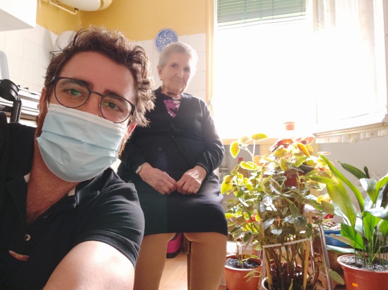 Petra López se había quedado sin poder salir de su casa. Ella quería comprar el pan, sin embargo, el ascensor pequeño que tiene el edificio estaba dañado y Petra no se atrevía a bajar las escaleras con su rodilla mala. Llevaba dos días sin salir y eso la tenía un poco triste. En ese momento, el periodista bajó a por el correo y la encontró en el rellano. Le ofreció ir a hacer la compra por ella, pero la realidad es que el pan era solo una excusa para salir y tomar el aire. Bautista, al darse cuenta de la situación, la invitó a subir a su casa y asomarse un rato por su balcón. Petra vive en un piso muy humilde que no tiene ventanas al exterior por lo que no pudo rechazar la propuesta de su vecino.
