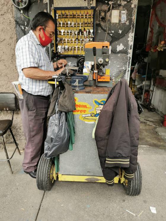 Ese desconocimiento por la capital lo llevó a hacer una serie de ilustraciones sobre los personajes de Ciudad de México, que incluyen a personalidades como Lady tacos de canasta y a otras personalidades más cotidianas, como oficiales de tránsito, cerrajeros y otros oficios. “Ella es un personaje muy icónico y aunque tampoco es de la ciudad, llegó buscando trabajo y una oportunidad como muchos de los que no nacimos aquí”, comenta. "Por eso fue el primer personaje de esta serie", dice.