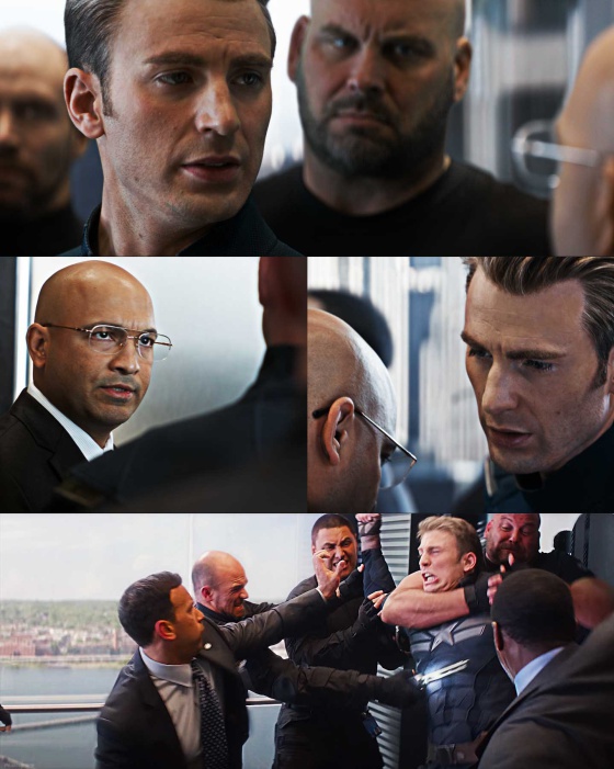 En esta imagen, que cuenta con decenas de versiones en castellano –y en inglés– el Capitán América cuenta a Jasper Sitwell [un agente encubierto del grupo Hydra en las películas de Marvel] un chiste malo, malísimo. Tanto, que consigue que le peguen. Las imágenes de esta broma están sacadas de dos películas del Universo Marvel: Soldado de invierno, cuando unos soldados de Hydra atacan al Capitán América en un ascensor y Vengadores: Endgame, cuando el Capi viaja al pasado y, para evitar esa pelea en el ascensor, se hace pasar por un agente de Hydra. Las tres primeras imágenes del meme pertenecen a Endgame, y la última, a Soldado de Invierno.