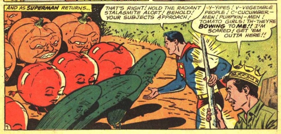 También Superman, en el número 151 de su colección, viaja a Venus encontrándose un mundo habitado por chicas tomate, hombres calabaza y otros seres vegetales cómicos.