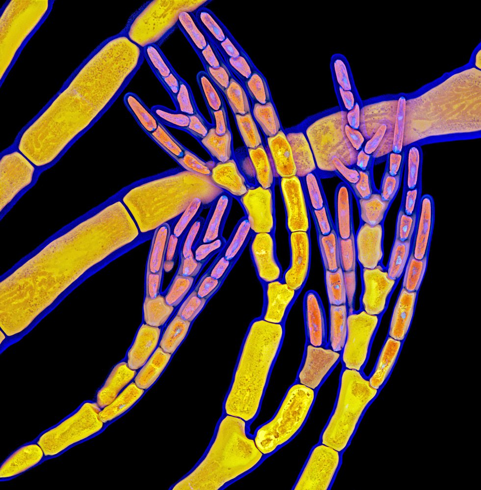 Esporas e hifas (filamentos) multinucleadas de un hongo de suelo. Universidad de Ottawa / Cedida por Nikon Small World