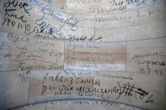 "Un sueño hecho realidad", escribió un tal Afanassev. La mayoría, hasta un 95%, se limitó a dejar constancia de sus nombres ("Ivanov", "Pyotr" o "Boris Victorovich Sapunov", por ejemplo). Otro dejó escrita la ruta que había seguido hasta llegar al corazón de Alemania ("Moscú-Smolensk-Berlín, mayo 1945"). Las inscripciones permanecieron ocultas durante décadas y volvieron a ver la luz en la pasada década de los noventa, conservándose algunas de ellas en la actualidad, aunque otras fueron borradas por su contenido demasiado belicista o soez. "Estábamos borrachos y aún teníamos miedo a que nos disparasen justo al final", se justificó años después uno de los soldados que dejaron su firma, según recoge este artículo en The Atlantic.