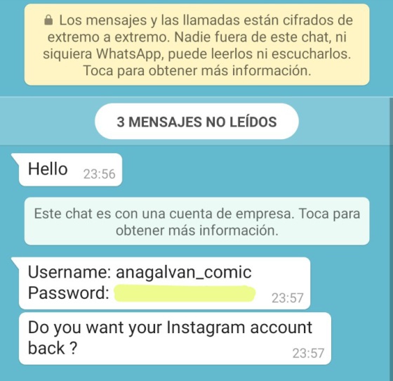 Varela explica que, en su caso, los secuestradores se hicieron pasar por un cliente que quería una fotografía determinada. En vez de adjuntarla, incluían un link que, al pulsarlo, pedía a Varela que se logeara en Instagram. Esa ventana de inicio de sesión en Instagram era falsa: cinco minutos después de introducir sus datos, los hackers cambiaron el nombre de su cuenta, el correo de acceso y el teléfono vinculado a ella.