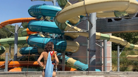 Leonor Martín, cuenta que el primer parque abandonado que intentaron visitar resultó un fiasco: se trataba del parque acuático de San Fernando de Henares, que Navarro visitó antes de la pandemia y que, cuando volvió con todo el equipo en verano, ya había sido desmantelado. “Fue muy impactante también esa imagen, comprobar cómo habían rellenado con tierra los vasos de las piscinas, que todavía estaba blanda, cómo habían quitado todos los toboganes… Mi sensación fue de sorpresa al ver esas heridas que habían quedado sobre el terreno: se intuía perfectamente dónde habían estado los toboganes, las piscinas…", explica.