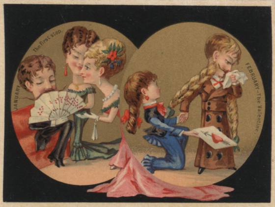 La historiadora británica Anna Maria Barry explica en un artículo en HistoryExtra que las primeras tarjetas de San Valentín, hechas a mano, datan del siglo XVIII, aunque existen también felicitaciones documentadas (en este caso, cartas) en el siglo XV. Es en el siglo XIX cuando empieza a ser posible comprarlas ya impresas. Los símbolos que las decoran son flores, Cupidos y, por supuesto, corazones, atravesados o no por flechas.