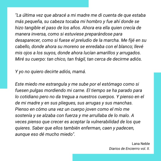 Estos diarios, divididos en tres volúmenes, supusieron un trabajo de 7 u 8 meses. “La tarea de lectura y selección fue ardua porque estábamos hablando de unas 1500 páginas de lectura en frío”, explica Hernández, que vive en México. “Esa tarea la hicimos mi compañera Carla Santángelo (que vive en Valencia) y yo. Después corregimos y editamos los seleccionados y Adriana Zea (residente en México) nos ayudó a revisar”. Mencionar los países donde se encuentran no es casual: así como la antología aborda el confinamiento desde distintos puntos de España y Latinoamérica, también la editorial lo hace. La diseñadora de la portada, Fernanda Cid, vive en Argentina; el equipo de producción editorial, formado por Sam Rivera y Beatriz Urbán, reside en Madrid.